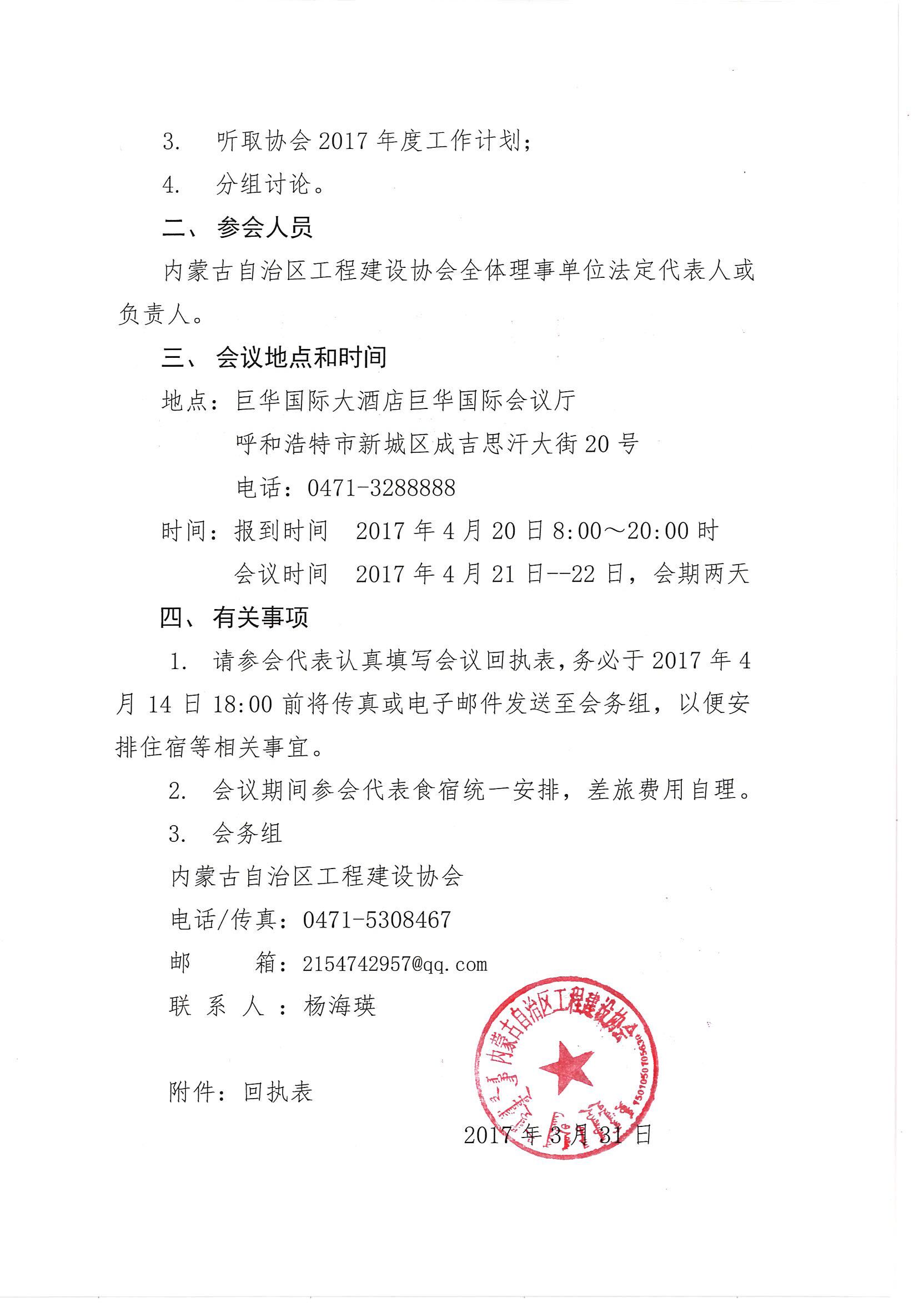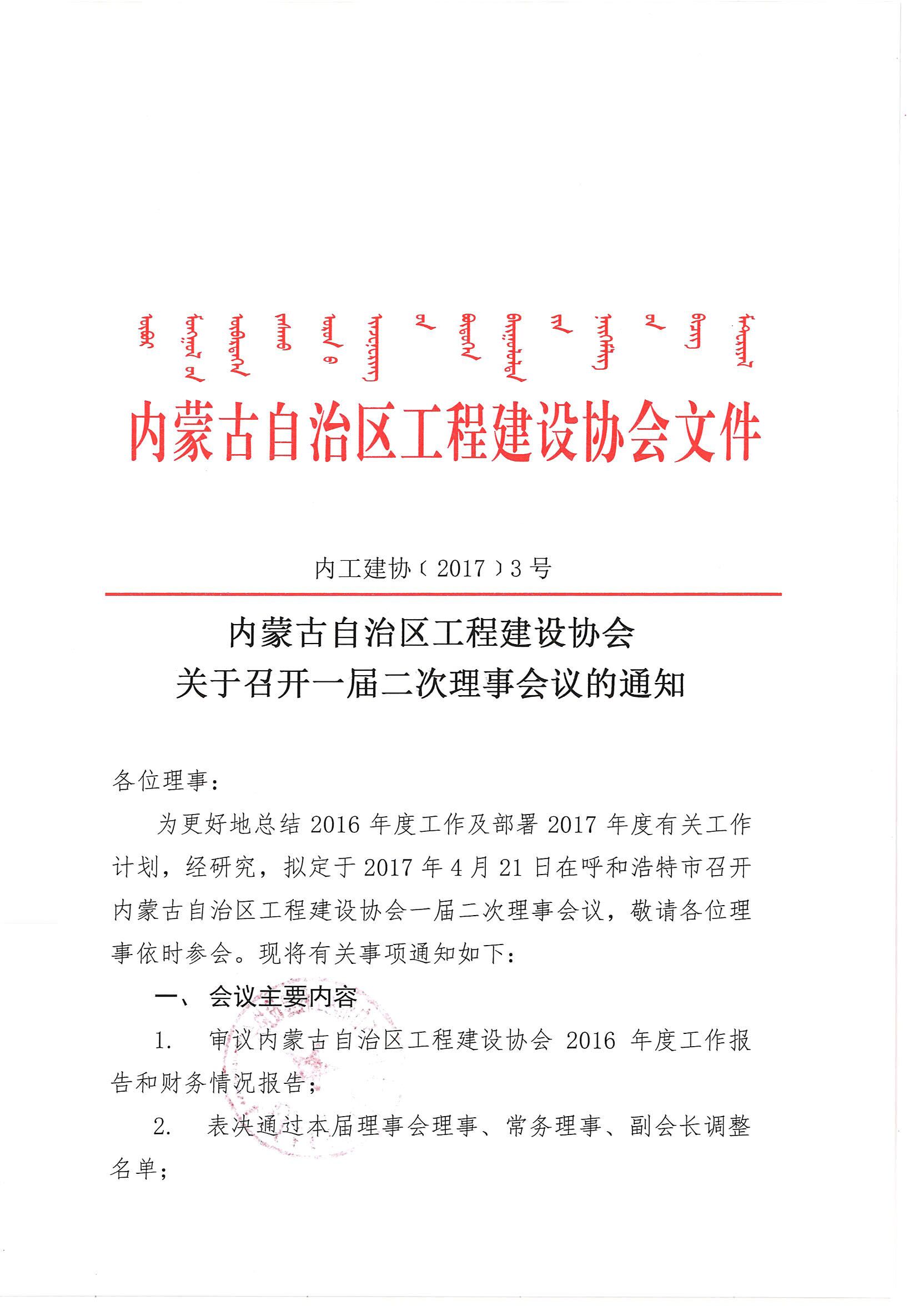 內(nèi)蒙古自治區(qū)工程建設(shè)協(xié)會(huì)關(guān)于召開一屆二次理事會(huì)議的通知